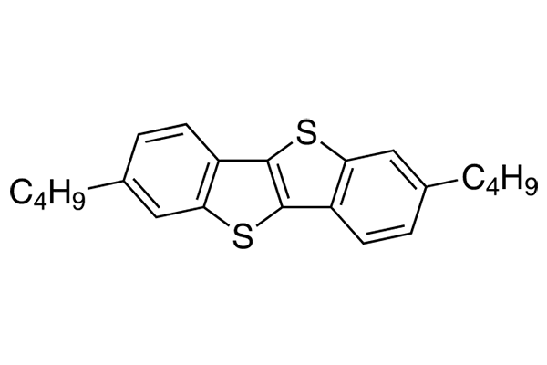 BTBT化合物具有兩個(gè)苯環(huán)和一個(gè)噻吩環(huán)的結(jié)構(gòu),屬于二苯并二苯稠合梯型π-共軛化合物。其化學(xué)結(jié)構(gòu)使其在電子傳導(dǎo)方面表現(xiàn)出優(yōu)異的性能,具有高電子遷移率和良好的熱穩(wěn)定性。BTBT的HOMO能級(jí)較低(約-5.88 eV),這使得基于BTBT的有機(jī)薄膜晶體管(OTFTs)器件具有較大的閾值電壓。