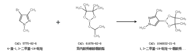1.通過4-溴-1,3-二甲基-1H-吡唑和異丙醇頻哪醇硼酸酯合成1,3-二甲基-1H-吡唑-4-硼酸頻哪醇酯