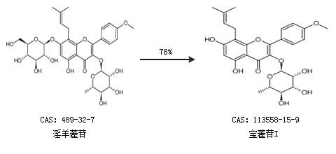 1.通過(guò)淫羊藿苷合成寶藿苷I,收率約78%;