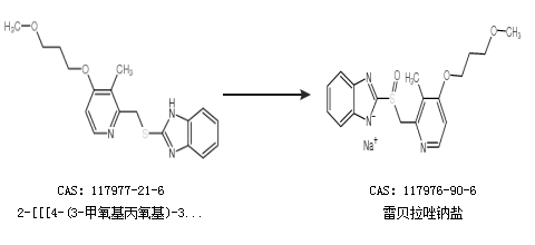 2.通過2-[[[4-(3-甲氧基丙氧基)-3-甲基吡啶-2-基]甲基]硫代]-1H-苯并咪唑合成雷貝拉唑鈉鹽