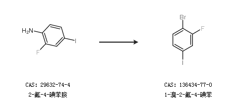 2.通過2-氟-4-碘苯胺合成1-溴-2-氟-4-碘苯