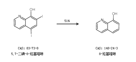2.通過(guò)5,7-二碘-8-羥基喹啉合成8-羥基喹啉,收率約51%;
