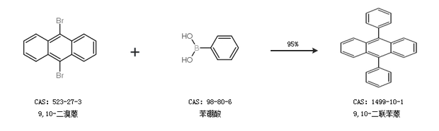 1.通過9,10-二溴蒽和苯硼酸合成9,10-二聯(lián)苯蒽,收率約95%;
