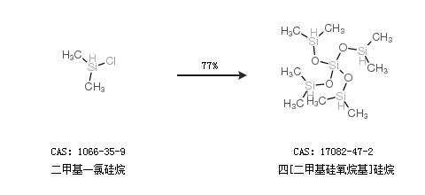 2.通過硅酸四乙酯和二甲基乙氧基硅烷合成四[二甲基硅氧烷基]硅烷,收率約68%;