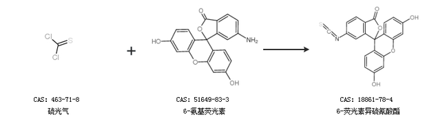1.通過(guò)硫光氣和6-氨基熒光素合成6-熒光素異硫氰酸酯