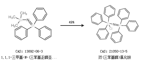 2.通過1,1,1-三甲基-N-(三苯基正膦亞基)硅烷胺合成雙(三苯基膦)氯化銨,收率約49%;