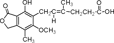麥考酚酸,E-4-甲基-6-(1,3-二氫-7-甲基-4-羥基-6-甲氧基-3-氧代-5-異苯并呋喃基)-4-己烯酸