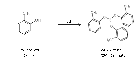 2.通過(guò)2-甲酚合成亞磷酸三鄰甲苯酯,收率約14%;