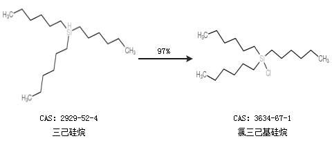 1.通過(guò)三己硅烷合成氯三己基硅烷,收率約97%;