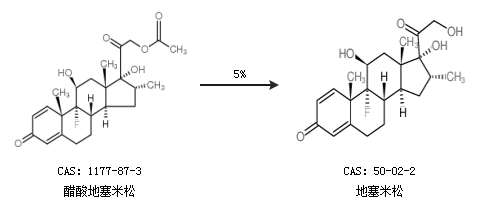 1.通過(guò)醋酸地塞米松合成地塞米松,收率約5%;
