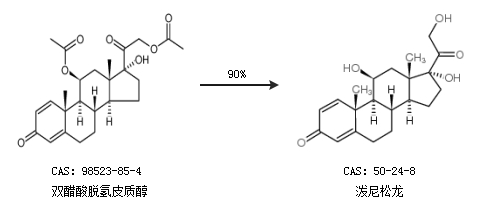 2.通過(guò)雙醋酸脫氫皮質(zhì)醇合成潑尼松龍,收率約90%;
