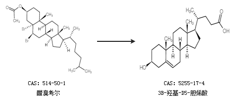 1.通過醋溴考爾合成3B-羥基-D5-膽烯酸