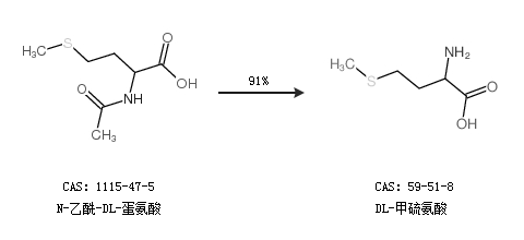 2.通過(guò)N-乙酰-DL-蛋氨酸合成DL-甲硫氨酸,收率約91%;