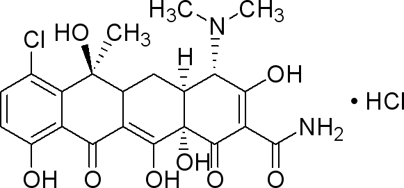 金霉素鹽酸鹽,鹽酸氯四環(huán)素,6-甲基-4- (二甲氨基)-3,6,10,12,12α-五羥基-1,11-二氧代-7- 氯-1,4,4α,5,5α,6,11,12α- 八氫-2-并四苯甲酰胺酸酸鹽