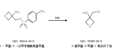 1.通過3 - 甲基-3-(對甲苯磺酰氧基甲基)環(huán)氧丙烷合成3-溴甲基-3-甲基-1-氧雜環(huán)丁烷,收率約94%;