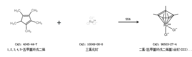 1.通過1,2,3,4,5-五甲基環(huán)戊二烯和三氯化釕合成二氯(五甲基環(huán)戊二烯基)合釕(III)聚合物,收率約55%;