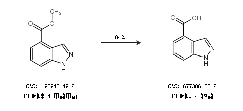 2.通過(guò)1H-吲唑-4-甲酸甲酯合成1H-吲唑-4-羧酸,收率約84%;