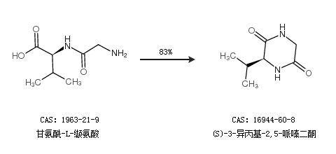 1.通過甘氨酰-L-纈氨酸合成(S)-3-異丙基-2,5-哌嗪二酮,收率約83%;