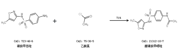 2.通過磺胺甲惡唑和乙酰氯合成醋磺胺甲噁唑,收率約71%;