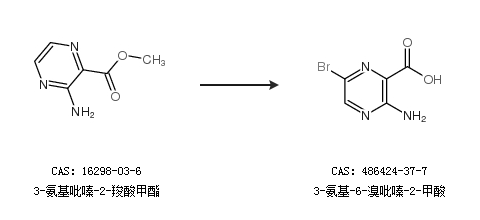 2.通過(guò)3-氨基吡嗪-2-羧酸甲酯合成3-氨基-6-溴吡嗪-2-甲酸