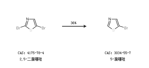2.通過(guò)2,5-二溴噻唑合成5-溴噻唑,收率約36%;