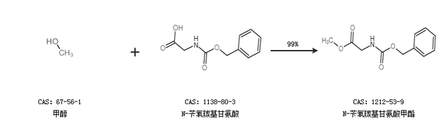 1.通過甲醇和N-芐氧羰基甘氨酸合成N-芐氧羰基甘氨酸甲酯,收率約99%;