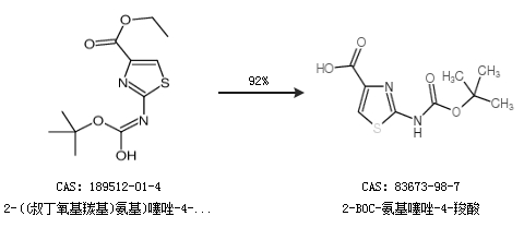 1.通過2-((叔丁氧基羰基)氨基)噻唑-4-羧酸乙酯合成2-BOC-氨基噻唑-4-羧酸,收率約92%;