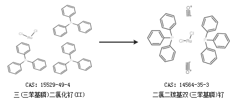 中文別名 三苯基膦羰基氯化釕;二(三苯基膦)二羰基二氯化釕(II);雙(三苯基膦基)二羰基合氯化釕(Ⅱ);