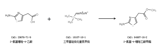 2.通過(guò)2-氨基噻唑-4-乙酸和三甲基硅烷化重氮甲烷合成2-氨基-4-噻唑乙酸甲酯