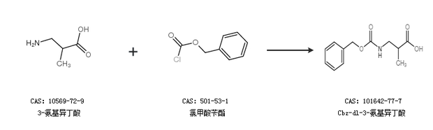 2.通過(guò)氯甲酸芐酯合成Cbz-dl-3-氨基異丁酸,收率約64%;