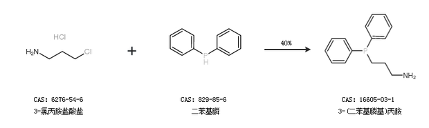 2.通過3-氯丙胺鹽酸鹽和二苯基膦合成3-(二苯基膦基)丙胺,收率約40%;