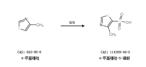 1.通過(guò)4-甲基噻唑合成4-甲基噻唑-5-磺酸,收率約92%;