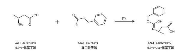 1.通過(S)-3-氨基丁酸和氯甲酸芐酯合成(S)-3-Cbz-氨基丁酸,收率約97%;