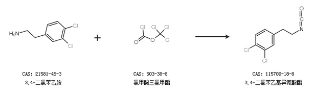 1.通過3,4-二氯苯乙胺和氯甲酸三氯甲酯合成3,4-二氯苯乙基異氰酸酯