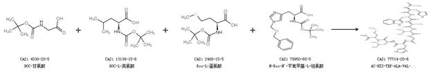 1.通過BOC-甘氨酸、BOC-L-亮氨酸、Boc-L-蛋氨酸和N-Boc-N''-芐氧甲基-L-組氨酸合成AC-HIS-TRP-ALA-VAL-GLY-HIS-LEU-MET-NH2