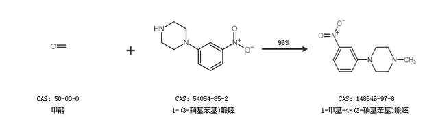 2.通過甲醛和1-(3-硝基苯基)哌嗪合成1-甲基-4-(3-硝基苯基)哌嗪,收率約96%;