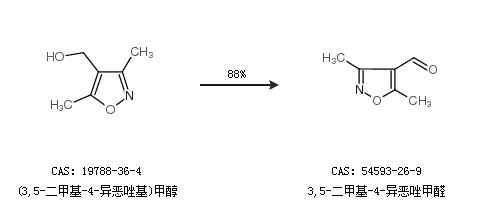 1.通過(3,5-二甲基-4-異惡唑基)甲醇合成3,5-二甲基-4-異惡唑甲醛,收率約88%;