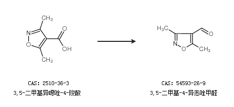 2.通過3,5-二甲基異噁唑-4-羧酸合成3,5-二甲基-4-異惡唑甲醛