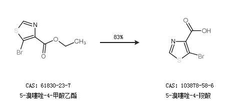 1.通過5-溴噻唑-4-甲酸乙酯合成5-溴噻唑-4-羧酸,收率約83%;
