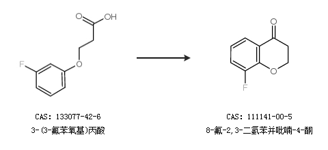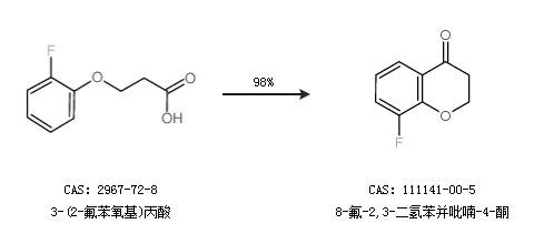 1.通過(guò)3-(2-氟苯氧基)丙酸合成8-氟-2,3-二氫苯并吡喃-4-酮,收率約98%;