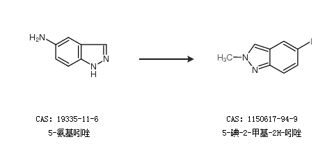 2.通過5-氨基吲唑合成5-碘-2-甲基-2H-吲唑