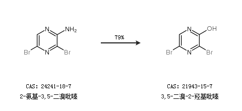 1.通過(guò)2-氨基-3,5-二溴吡嗪合成3,5-二溴-2-羥基吡嗪,收率約79%;