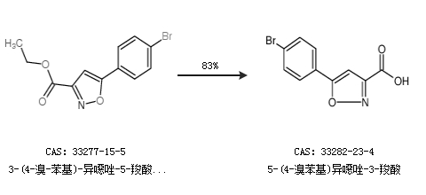 1.通過(guò)3-(4-溴-苯基)-異噁唑-5-羧酸乙酯合成5-(4-溴苯基)異噁唑-3-羧酸,收率約83%;
