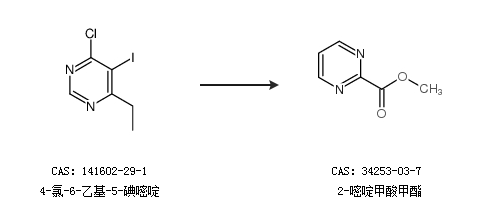2.通過(guò)4-氯-6-乙基-5-碘嘧啶合成2-嘧啶甲酸甲酯
