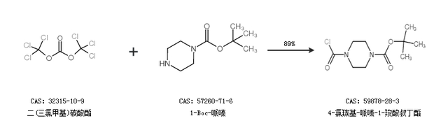 1.通過二(三氯甲基)碳酸酯和1-Boc-哌嗪合成4-氯羰基-哌嗪-1-羧酸叔丁酯,收率約89%;