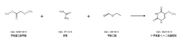 2.通過甲氧基乙酸甲酯、尿素和甲酸乙酯合成5-甲氧基-2,4-二羥基嘧啶