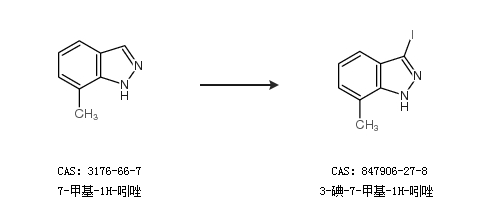 1.通過7-甲基-1H-吲唑合成3-碘-7-甲基-1H-吲唑