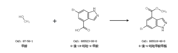 2.通過(guò)甲醇和6-溴-1H-吲唑-4-甲酸合成6-溴-4-吲唑甲酸甲酯