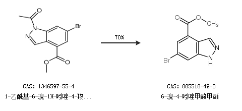 1.通過(guò)1-乙;-6-溴-1H-吲唑-4-羧酸甲酯合成6-溴-4-吲唑甲酸甲酯,收率約70%;