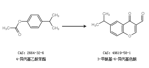 2.通過(guò)4-異丙基乙酸苯酯合成3-甲酰基-6-異丙基色酮